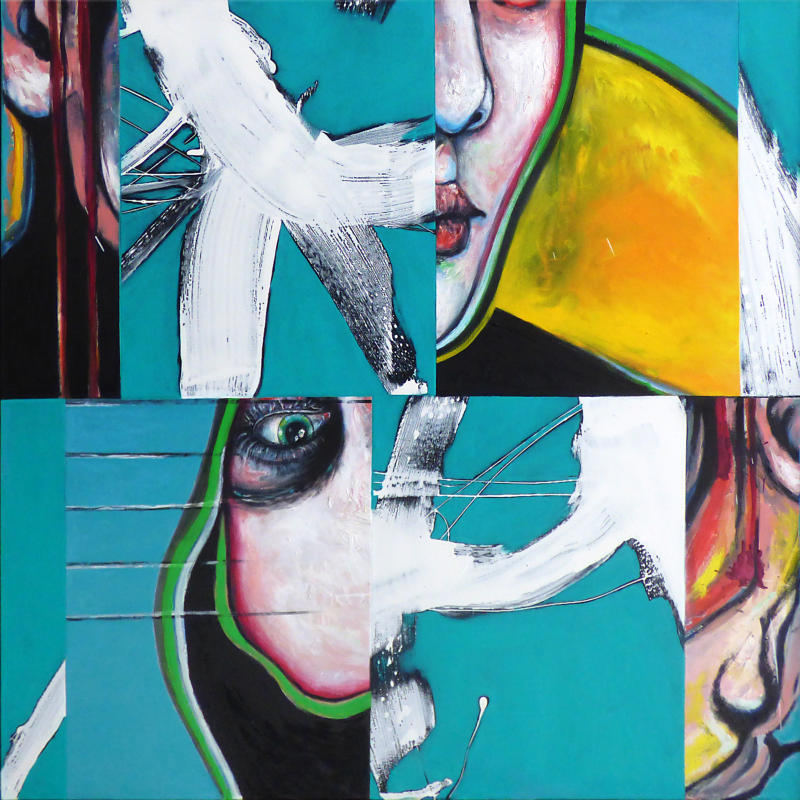 Öl/Acryl auf Baumwolle, fragmentiert, auf 5 mm MDF aufgeblockt,