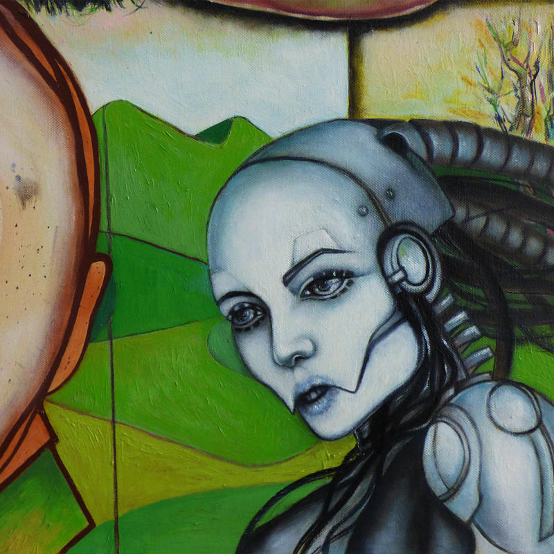 Öl auf Baumwolle, auf MDF aufgeblockt, Schattenfugenrahmen,